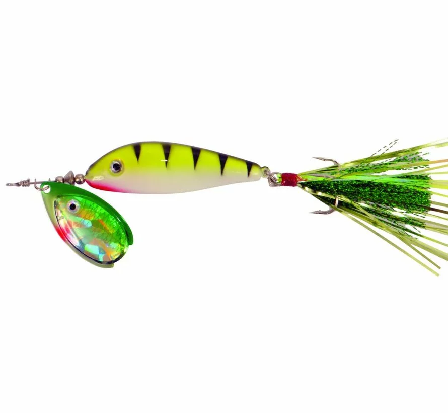 Het draaiende spinnerblad zorgt voor veel trillingen welke in combinatie met de interne kogeltjes elke roofvis tot een aanval zal uitlokken!